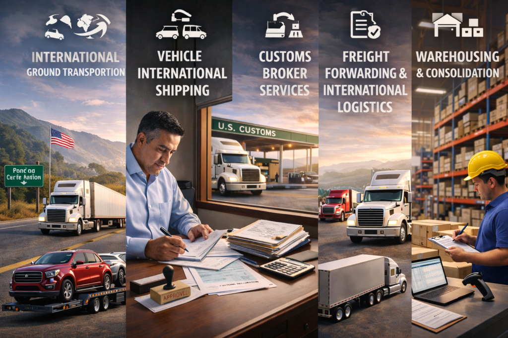 Safe and reliable international vehicle transportation between the United States and Central America, including cars, trucks, motorcycles and heavy equipment.